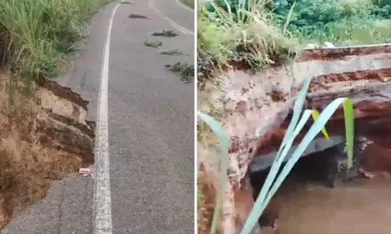 Um trecho da rodovia BA-142, entre os municípios de Ituaçu e Barra da Estiva, na Chapada Diamantina, apresenta risco de desabamento após as fortes chuvas que atingem a região...