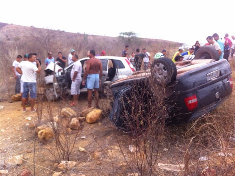 Dois veículos de passeio, um Gol e um Fiesta, colidiram na manhã deste sábado (28), na BA-262, nas proximidades do município de Anagé, no sudoeste baiano. Segundo informações obtidas pelo site Brumado Notícias, os veículos colidiram após um deles ter tentado ultrapassar perigosamente uma carreta. Sem tempo para completar a ultrapassagem, o veículo bateu de frente com o outro. O Fiesta, de propriedade de um taxista natural da cidade de Anagé, realizava o tráfego pela rodovia no sentido Vitória da Conquista/Anagé. Já o Gol da cidade de Barra da Estiva fazia o sentido inverso. Os dois motoristas foram socorridos pelo Serviço de Atendimento Móvel de Urgência (Samu 192) e encaminhados para um hospital de Vitória da Conquista em estado grave. Os demais ocupantes de ambos os veículos tiveram apenas ferimentos leves e foram encaminhados para o Hospital de Anagé. A Polícia Rodoviária Estadual (PRE) esteve no local para registrar a ocorrência e controlar o trânsito na rodovia. (Fotos: Lay Amorim)/(Brumado Notícias).
