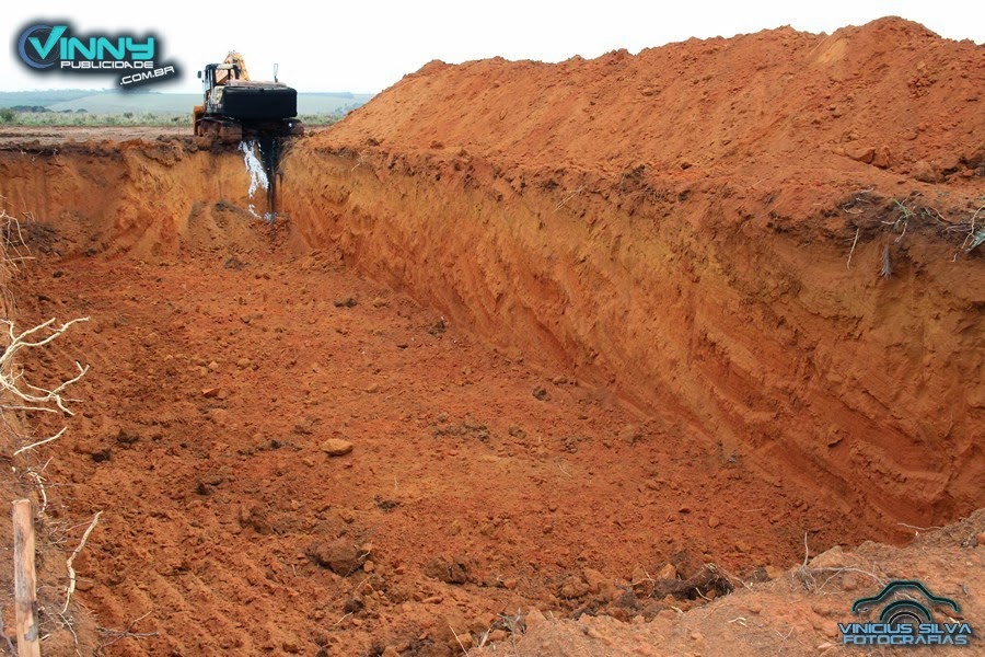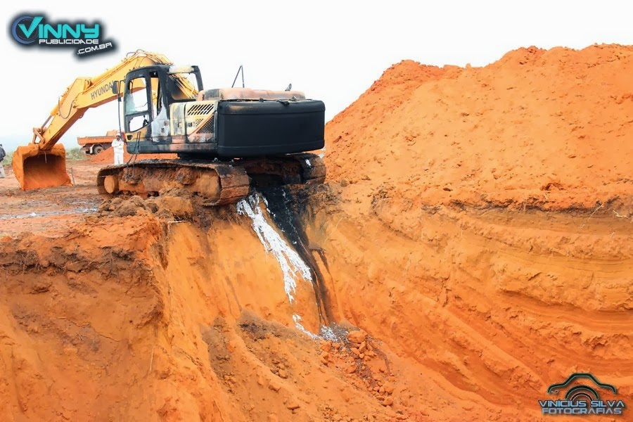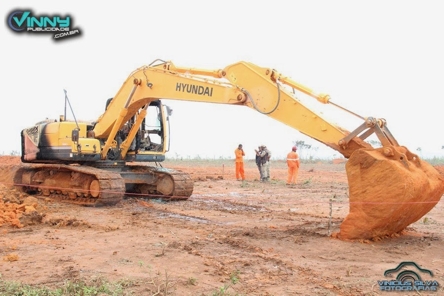A Secretaria procurou algumas empresas privadas para firmar parcerias, essas empresas cederam alguns maquinários dentre eles uma escavadeira Hidráulica para execução das escavações.