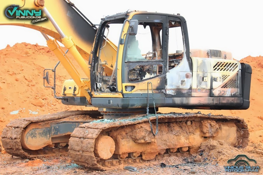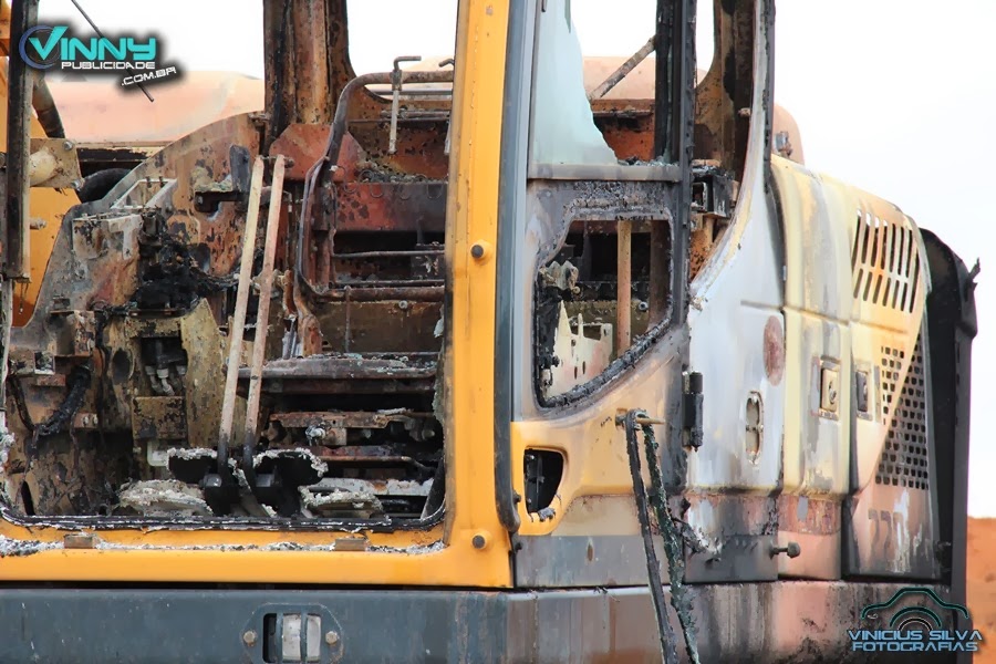 Na madrugada de quinta pra sexta um incêndio criminoso destruiu a máquina escavadeira Hidráulica e uma Caçamba Modelo Ford.