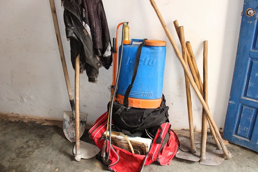A Polícia Milita informou o individuo de nome: Paulo Roberto de Souza santos de 33 anos, natural de Brumado, foi detido com os seguintes objetos: 01 bomba de pulverizar, várias ferramentos, inclusive enxadas, foices e picaretes, além de alguns vasilhames de agrotóxicos. (Fotos: Vinícius Silva/Vinny Publicidade).