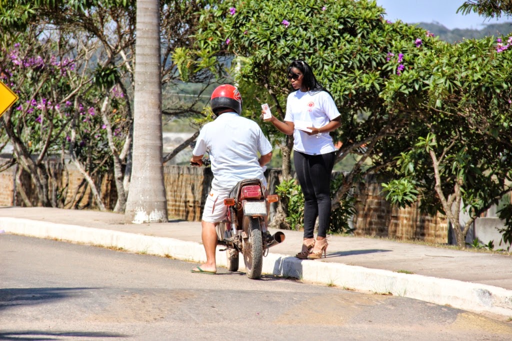 A equipe está disponibilizando panfletos educativos e colagem de adesivos com o número do SAMU 192. (Fotos: Vinícius Silva/Vinny Publicidade).
