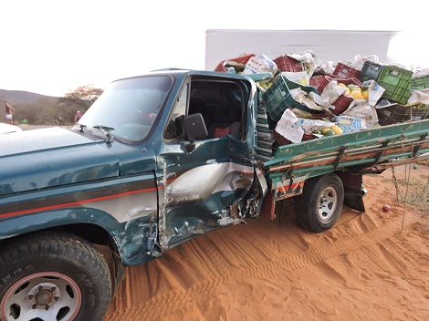 Um acidente de trânsito de pequenas proporções por pouco não acaba numa tragédia, na tarde desta quarta-feira (15) por volta das 17h00, em um trecho da BA-148, nas proximidades do Rio São João, no município de Dom Basílio. Segundo relatos de testemunhas o fato se deu quando o motorista de um caminhão de um caminhão Mercedes-Benz 1113, JNW-0037, licença de Linhares, carregado com maracujá, que trafegava no sentido Brumado/Dom Basílio, acabou colidindo o vaículo contra uma D20 de cor verde, que também carregava maracujá, quando ela estava atravessando a rodovia, sendo ambos projetados para fora da pista. Tal versão foi confirmada por pessoas que estavam no local. Havia outras pessoas no interior dos veículos além dos motoristas, que apesar do susto não tiveram ferimentos mais graves. Parte da carga de maracujá ficou espalhada pela pista. Amos os veículos sofreram avarias na lataria. (L12 Notícias).