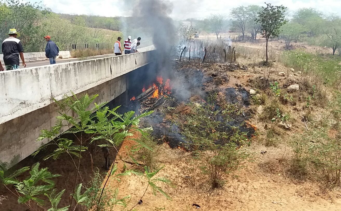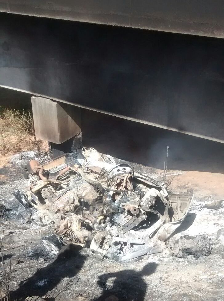 Anagé/Sussuarana: Veículo sai da pista, cai de ponte e pega fogo na BA – 142