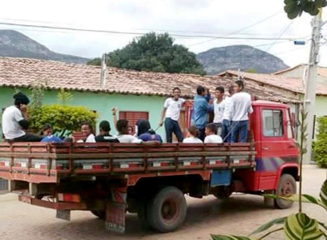 Os alunos que moram na Fazenda Nova, zona rural do município de Mucugê, na Chapada Diamantina, e estudam na Escola Municipal Eurico Belo, no distrito de Guiné, estão sendo transportados na carroceria de caminhão, conforme flagrante enviado ao site por uma moradora. De acordo com ela, existem os ônibus escolares disponibilizados pelo governo federal, mas não estão sendo utilizados.