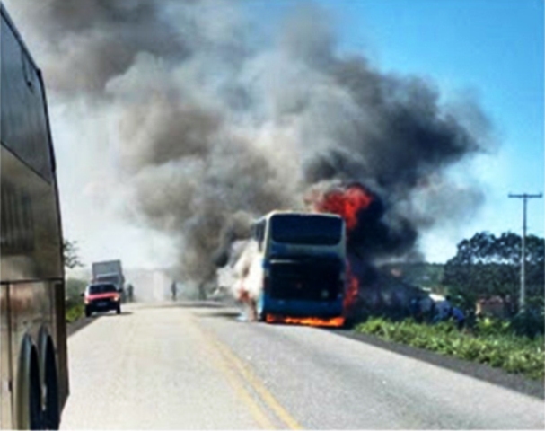 Ônibus da empresa Novo Horizonte pega fogo na BR-030