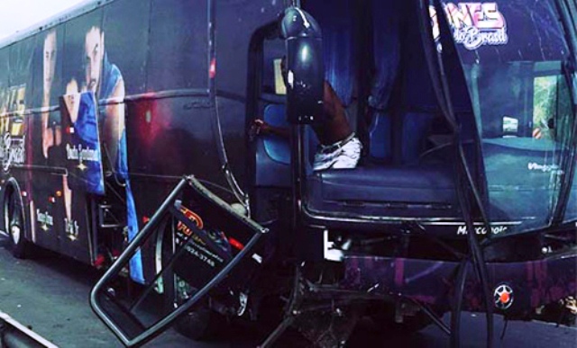 Por volta das 16h30 deste sexta-feira (10), o ônibus da banda Os Clones do Brasil se envolveu em um acidente próximo a cidade de Santo Estevão. O acidente ocorreu na BR-116, quando o veículo da banda colidiu com um caminhão em sentido contrário. Por sorte, nada grave. A carga do caminhão ficou espalhada pela pista. A assessoria da banda publicou as informações e fotos do acidente no Facebook, agradecendo a Deus pelo livramento. Nota da banda: Sofremos um acidente próximo a cidade de Santo Estevão. Mas Graças a Deus todos bem. Obrigado Senhor pelo livramento. Hoje temos um show na cidade de Itaberaba, com fé em Deus vamos cumprir. Obrigado o carinho a preocupação de todos. (Foto: BDM).