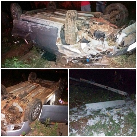 Um carro capotou no início da madrugada deste sábado (25), por volta de 00h30min, na Avenida Paramirim, próximo do Ginásio de Esportes de Livramento de Nossa Senhora/BA. Segundo informações apuradas pela redação do site, o motorista do veículo teria perdido o controle da direção, batido em um poste e capotado as margens da rodovia. O carro trafegava no sentido Paramirim/Livramento, e segundo informações havia duas pessoas no interior do veículo, Fernando Batista Malheiros, de 28 anos, e Danilo de Jesus Dourado, de 22 anos, oriundos da cidade de Macaúbas. Apesar do susto os ocupantes do veículo não tiveram ferimento graves. A Polícia Rodoviária Estadual (PRE) foi acionada ao local. O carro ficou destruído. (Foto: Adailton Silva)/(L12 Sudoeste).