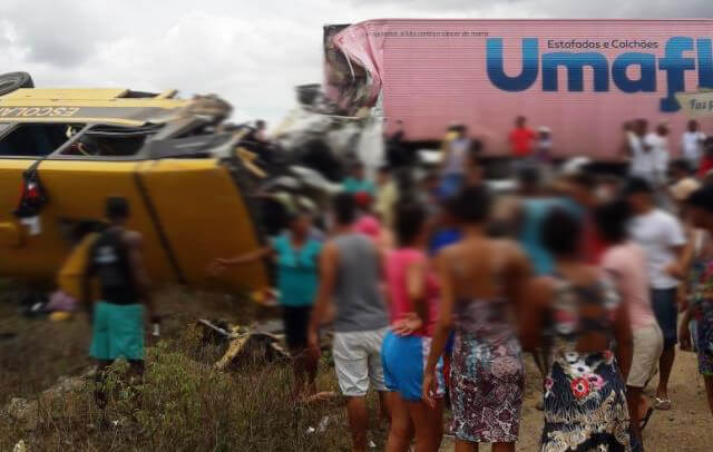Tragédia: Batida entre ônibus escolar e carreta deixa mortos na BR-116