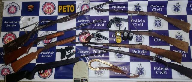 Cinco pessoas foram presas em flagrante e oito armas apreendidas durante a operação conjunta Serra do Leão, realizada nesta sexta-feira (15), no município de Pé de Serra, situada a 220 quilômetros de Salvador. Dez mandados de busca e apreensão foram cumpridos em endereços diferentes, na zona urbana da cidade e no povoado de Ouricuri.