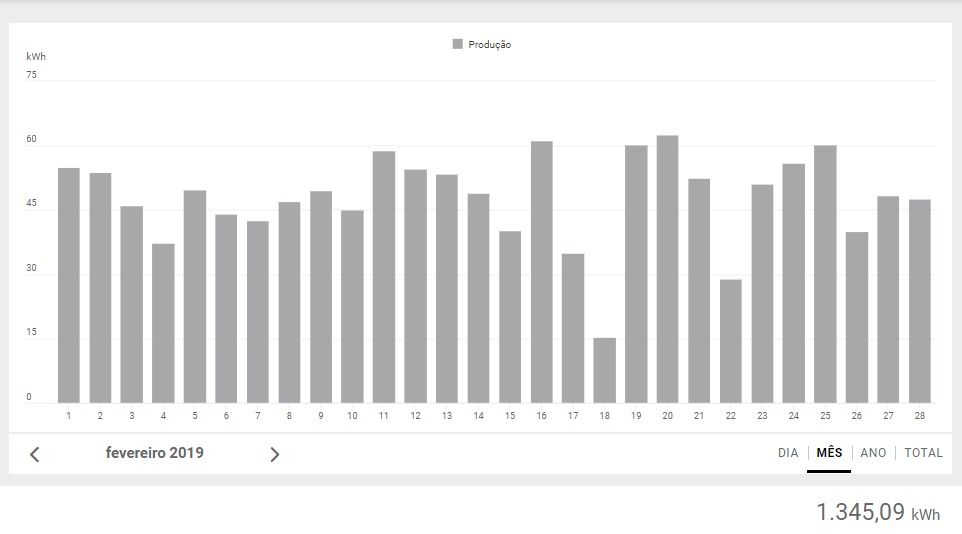 demonstra a produção diária de eletricidade