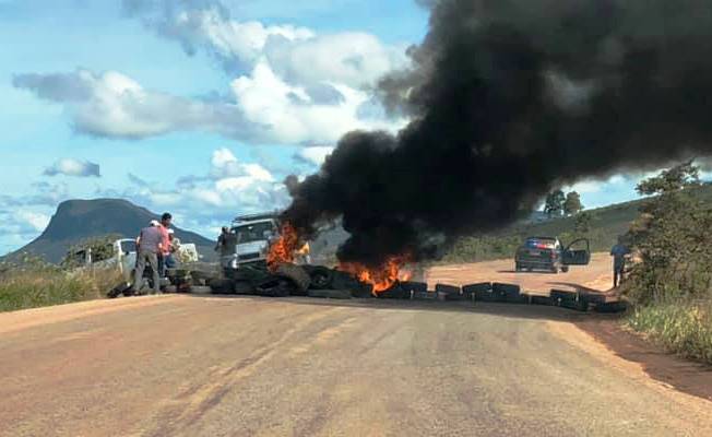 Em protesto contra as péssimas condições de trafegabilidade da BA-142, trecho entre os municípios de Tanhaçu, Ituaçu, Barra da Estiva e Ibicoara, na região da Chapada Diamantina – BA, nesta segunda-feira, 01 de abril de 2019, a comunidade local decidiu interditar a rodovia, em ambos os sentidos. Em nota, o Governo do Estado informou que serviços de manutenção já estão sendo feitos na BA-142, de Barra da Estiva a Tanhaçu, pela Secretaria de Infraestrutura da Bahia (Seinfra). “Além disso, o lançamento do edital para a realização de obras em aproximadamente 745 km de extensão de rodovias estaduais pelo programa de recuperação e manutenção está previsto para o mês de maio. Estão incluídos a BA-142, de Andaraí até Sussuarana, passando pelo entroncamento da BA-242 e Mucugê, a BA-046, de Itaberaba a Iaçu, a BA-245, Iaçu ao entrocamento da BA-142, que passa por Itaetê. Também compõem o trecho da BA-160, de Ibotirama a Bom Jesus da Lapa, a BA-148, do entroncamento da BR-242 a Rio de Contas, passando por Abaíra”, informa a nota. (Vinny Publicidade com fotos – reprodução/WhatsApp).