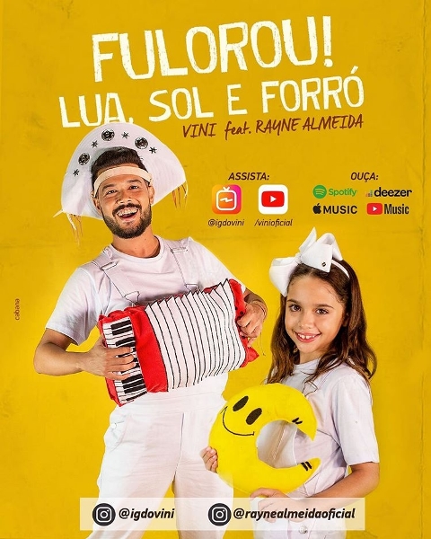 Inspirado pelo ritmo popular arrasta-pé do Nordeste, o artista convidou a cantora Rayne Almeida para fazer uma participação especial, além do coral infantil Emaús na música composta por Edigar Mão Branca, forrozeiro reconhecido da região. “Fiz questão de gravar meu primeiro single com este ritmo tão popular no Nordeste pela energia que ele transmite. É bastante comum em quadrilhas juninas e também em festas de São João. Acho também que precisamos valorizar a diversidade cultural que existe no Brasil e no mundo. Quero muito imprimir isso em minhas gravações”., comenta VINI que, recentemente, participou do clipe “Ei Paixão” da dupla Léo Ribeiro & Pyrany.