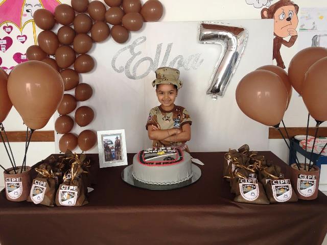 O aniversário de sete anos de Elloá dos Santos Araújo foi marcado pela presença dos policiais da Companhia Independente de Policiamento Especializado (Cipe) Chapada. A garotinha sonha em vestir a farda um dia e teve como tema da festa a unidade de especializada da Polícia Militar da Caatinga. A surpresa aconteceu na última quinta-feira (22), no município de Ruy Barbosa.