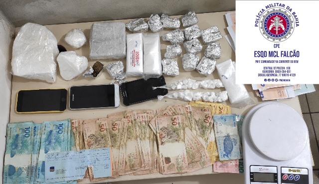 A dupla ainda informou aos PMs que, em sua residência, havia uma outra quantidade de drogas escondidas. “Ela autorizou a nossa entrada no local onde, após revista, encontramos 40 papelotes de cocaína, três tabletes da droga, 15 trouxinhas de maconha, um caderno contendo anotações do tráfico de drogas, comprovantes de depósito além de celulares, notebook e uma balança”, explicou o oficial.