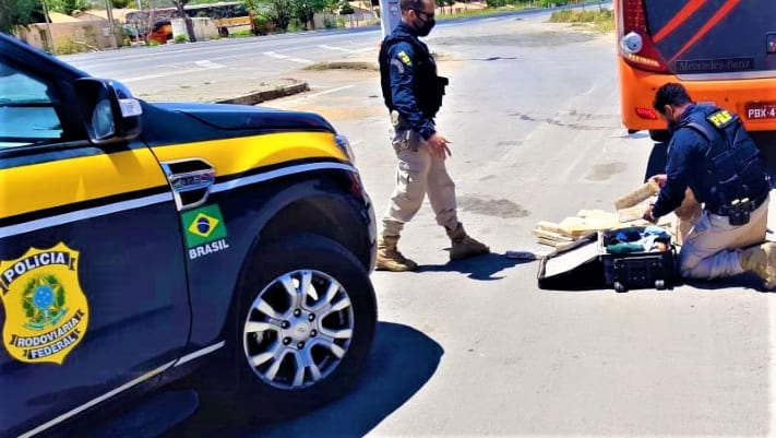 Durante os procedimentos de fiscalização, os policiais encontraram uma mala “lotada” com tijolos de maconha pronta para consumo. Ao verificarem uma caixa de papelão descobriram também mais uma quantidade expressiva da droga. Após pesagem, o volume apreendido correspondeu a aproximadamente 49,5 Kg (quarenta e nove quilos e quinhentas gramas).