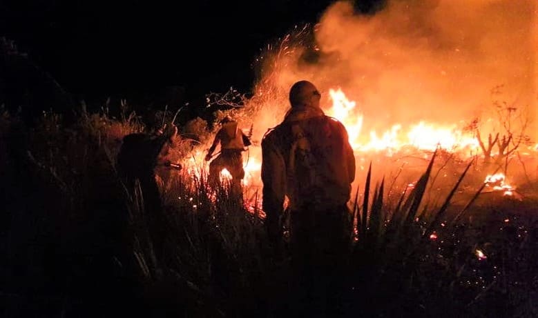 Equipes do Corpo de Bombeiros, Prev Fogo, ICMbio (Instituto Chico Mendes de Biodiversidade) e brigadistas da região estão no local para evitar que as chamas se espalhem.