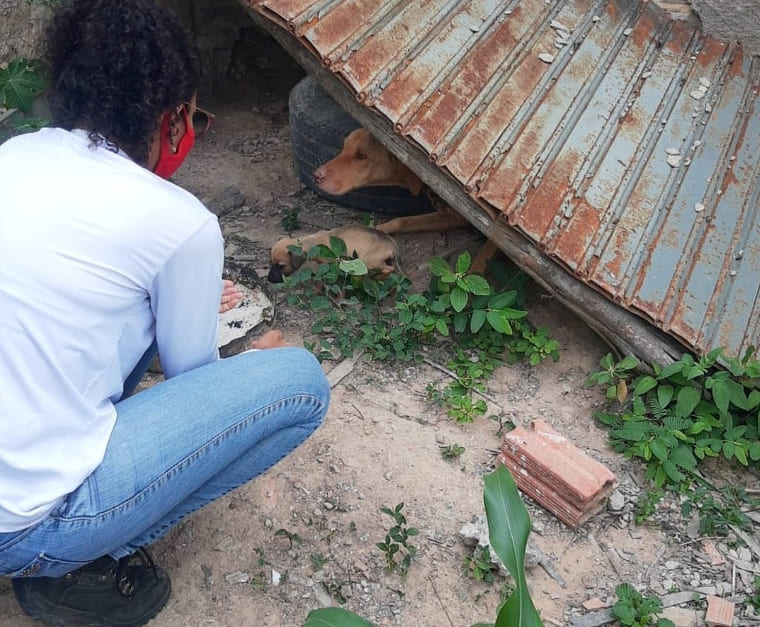 Atendendo a solicitação dos membros da organização, as guarnições deslocaram para o local e lá constataram que a denúncia era procedente. Foram encontrados uma cadela com 3 filhotes (raça indefinida) em que, segundo os membros da organização, estavam subnutridos, sem comida, sem água e abrigo. A cadela estava com uma das patas traseiras em estado avançado de necrose.