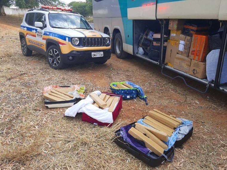 A Polícia Militar Rodoviária apreendeu mais de 70 quilos de maconha em um ônibus abordado em Monte Azul – MG. A droga estava dentro de malas e foi encontrada nesta terça-feira (02/02). Essa foi a maior apreensão realizada na região neste ano.