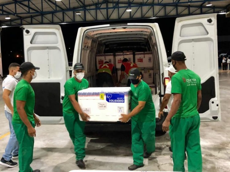 As vacinas estão sendo enviadas para o interior da Bahia em aeronaves do Grupamento Aéreo (Graer) da Polícia Militar e da Casa Militar do Governador (CMG), após a organização das doses feita pela equipe da coordenação de imunização do estado. Elas serão encaminhadas para as centrais regionais no interior da Bahia, de onde serão despachadas para os municípios.