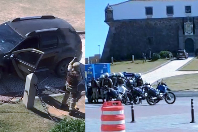 A Polícia Militar da Bahia emite nota de esclarecimento: “A Polícia Militar lamenta profundamente o episódio que ocorreu neste domingo (28), no Farol da Barra, quando todos os esforços foram feitos por um final pacífico durante um possível surto de um PM. O Batalhão de Operações Policiais Especiais adotou protocolos de segurança e o policial militar ferido foi socorrido imediatamente pelo SAMU“. (Foto/arte – Vinícius Silva/Vinny Publicidade e vídeos – reprodução/redes sociais).