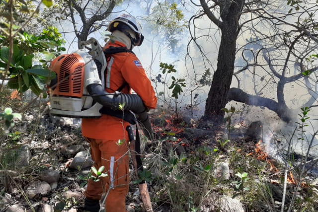 Além dos caminhões Auto Bomba Tanque, mochilas costais, abafadores e enxadas, as equipes contam com o apoio de duas aeronaves do programa ‘Bahia sem Fogo’, coordenado pela Secretaria Estadual do Meio Ambiente (Sema), brigadistas voluntários e de equipes do Instituto Chico Mendes de Conservação da Biodiversidade (ICMBio).