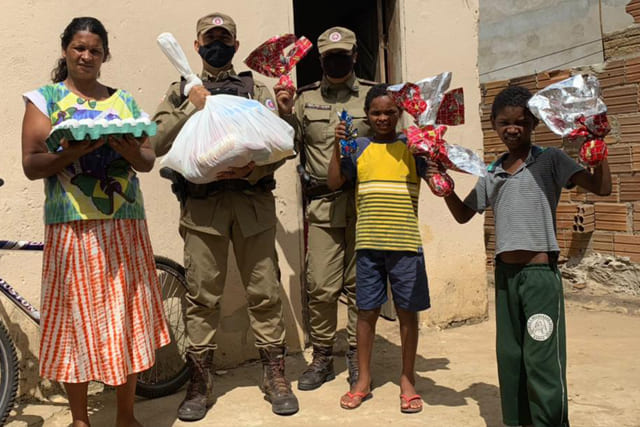 A Patrulha Solidária da PM, juntamente com grupos sociais e empresários, doou 200 ovos de Páscoa e cestas básicas para moradores em situação de vulnerabilidade social, na cidade de Vitória da Conquista. A entrega foi iniciada, na sexta-feira (02) e finalizada neste sábado (03/04).