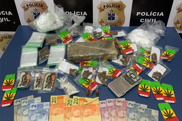 Porções de maconha e cocaína já embaladas para venda, balança, munições calibre 9 mm e uma quantia em dinheiro foram apreendidas, na quinta-feira (22), com um adolescente de 17 anos, durante ação da Delegacia de Tóxicos e Entorpecentes (DTE/Vitória da Conquista).