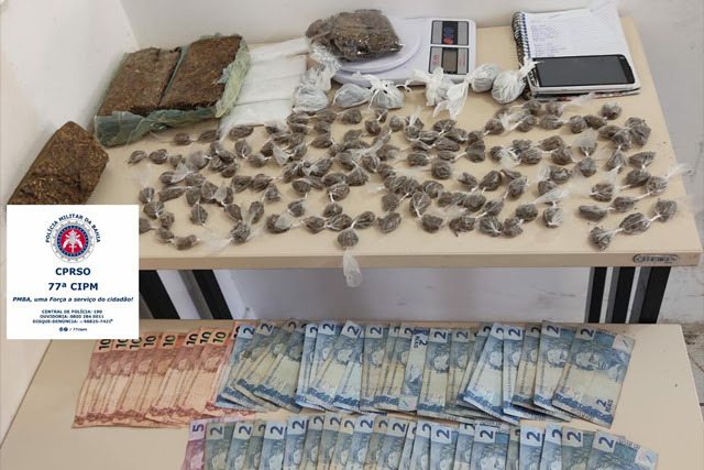 A 77ª Companhia Independente da Polícia Militar (CIPM/Vitória da Conquista) apreendeu drogas e dinheiro, na manhã desta sexta-feira (21/05), com um suspeito de tráfico de entorpecentes, no bairro de Alto Marom, município de Vitória da Conquista, Sudoeste da Bahia
