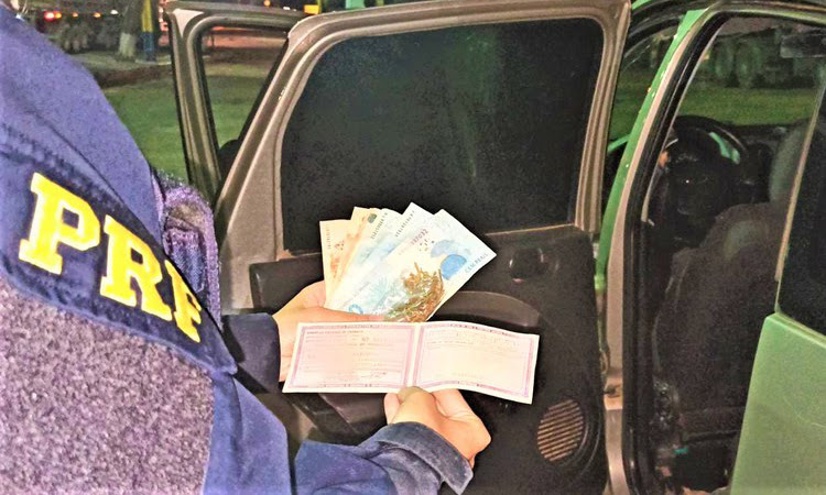 A equipe também encontrou uma CNH com indícios de falsificação. Sobre o documento, o condutor informou que havia comprado a carteira falsa por não ter tempo de adquirir uma CNH seguindo os trâmites normais.