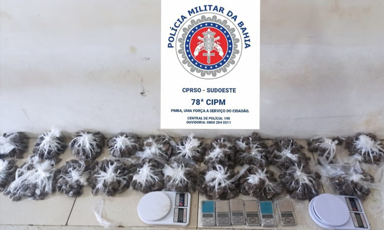 Equipes da 78ª Companhia Independente da Polícia Militar (CIPM/Vitória da Conquista) prenderam em flagrante um homem com 1.033 trouxas de maconha, oito balanças e embalagens para o armazenamento da droga, na manhã desta terça-feira (31/08), no bairro de Campinhos, em Vitória da Conquista, no Sudoeste da Bahia. Policiais da 78ª CIPM foram acionados após denúncias de que o homem estava com entorpecentes em um condomínio da cidade.