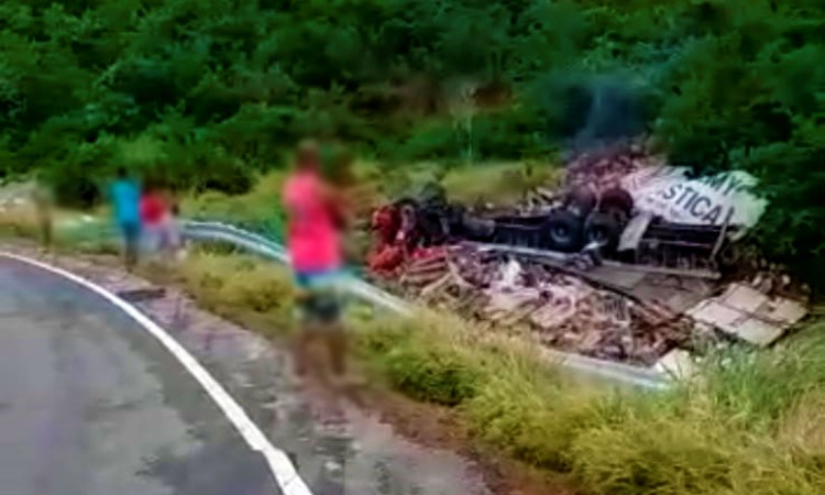 Segundo informações apuradas pelo site Vinny Publicidade, o caminhão com placa de Salvador (BA), capotou em uma curva. A suspeita é que o motorista tenha perdido o controle da direção antes do veículo capotar.