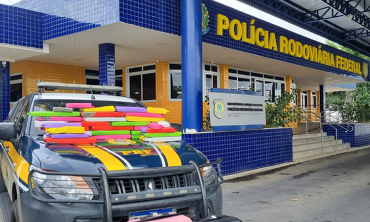 Durante os procedimentos de fiscalização, a equipe decidiu vistoriar o ônibus e ao abrirem o compartimento de carga, os policiais sentiram um forte cheiro de droga e acabaram encontrando tabletes de maconha que estavam acondicionados em duas malas nas cores rosa e preta.