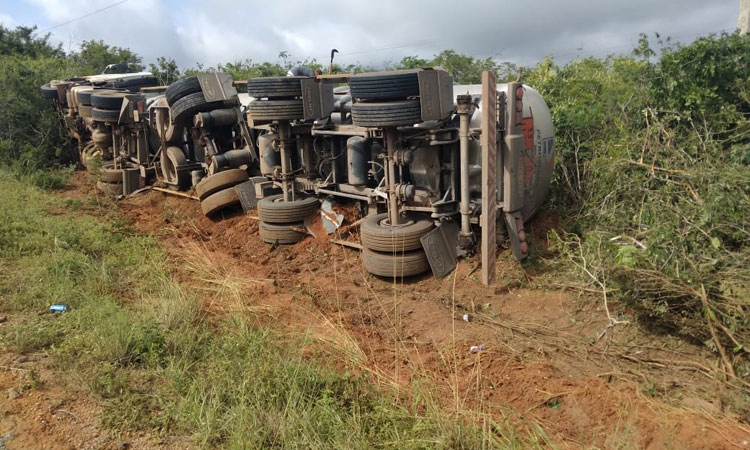 Acidente com caminhão carregado de gasolina interdita BR-430, em Caetité