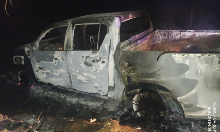 De acordo com o 7º BPM detalhou que uma guarnição da 4ª Cia, lotada em Bonito, se deslocou imediatamente para averiguar a denúncia e confirmou a veracidade. Os militares encontraram a caminhonete ainda em chamas e verificaram que haviam três corpos carbonizados, um deles dentro do veículo e dois no compartimento de carga.