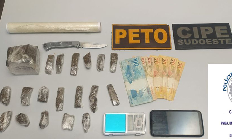 No decorrer da Operação Força Total, a guarnição do Pelotão de Emprego Tático Operacional (PETO), com apoio da Companhia Independente de Policiamento Especializado (Cipe) Sudoeste, prendeu na sexta-feira (15), por volta das 10h20, um homem foi preso em flagrante delito pelo crime de tráfico de drogas, em Livramento de Nossa Senhora, na região da Chapada Diamantina (BA).
