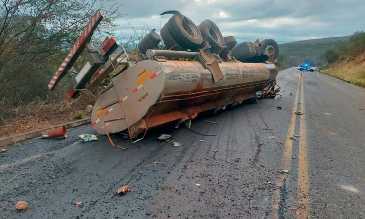 Ainda segundo o blog, o caminhão – tanque transportando produto inflamável capotou após o condutor perder o controle da direção em uma curva. Os dois feridos foram socorridos para o Hospital Geral Prado Valadares – HGPV, em Jequié (BA).