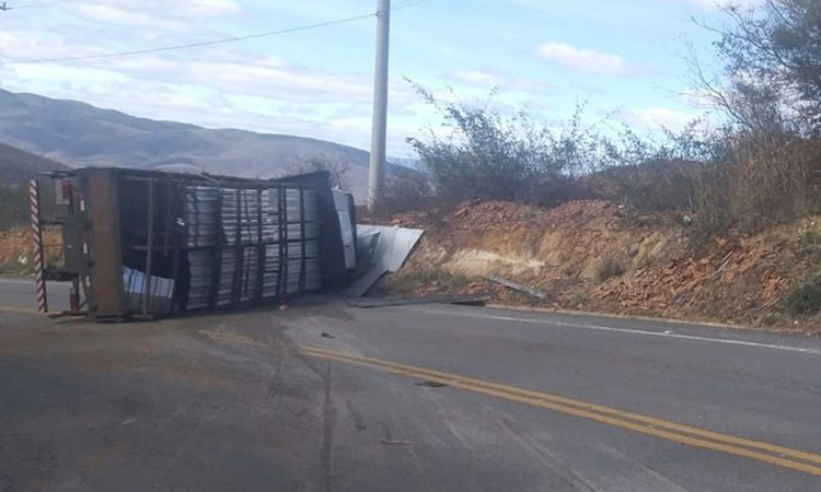 Na tarde da última segunda-feira (25), um caminhão carregado com ferro, tombou na BA-148, no Distrito de Marcolino Moura, em Rio de Contas, na região da Chapada Diamantina (BA). Segundo informou a 46ª Companhia Independente de Polícia Militar (CIPM), o motorista perdeu o controle da direção em uma curva e tombou o veículo. Além do motorista, um auxiliar estava no caminhão, mas, apesar da gravidade, ninguém se feriu. A Polícia Militar registrou a ocorrência e controlou o trânsito na rodovia.
