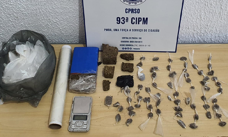 Nesta quarta-feira (24), por volta das 14h30, durante o patrulhamento tático, uma guarnição da 93ª Companhia Independente de Polícia Militar (CIPM), avistou uma pessoa com atitudes suspeitas de tráfico de drogas, em Maracás, no Sudoeste da Bahia. Ao ser dada voz de abordagem, o homem lançou o material por cima do portão de uma residência e empreendeu fuga.