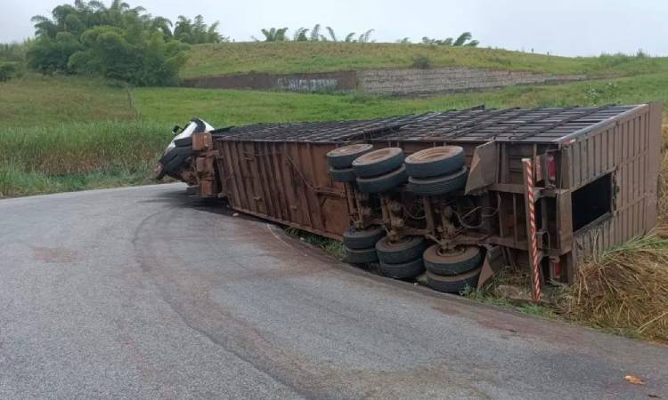 Na noite deste domingo (26), uma carreta tombou na BA-263, no trecho entre Itambé e Vitória da Conquista, no Sudoeste da Bahia. O acidente ocorreu por volta das 21h, no km 70, na região conhecida como Serra do Marçal, e foi comunicado à Polícia Rodoviária Estadual (PRE) às 21h30.