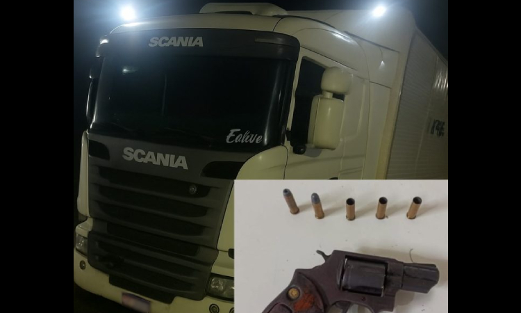 De acordo com a Polícia Militar, os seguintes materiais foram apreendidos: 01 revólver calibre .38 ; 01 aparelho celular e 01 veículo Scania/G.