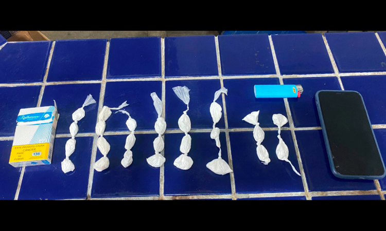 No local indicado, os policiais localizaram uma motocicleta suspeita. Durante a vistoria, foram encontradas 25 trouxinhas de uma substância análoga à cocaína escondidas sob o banco do veículo.