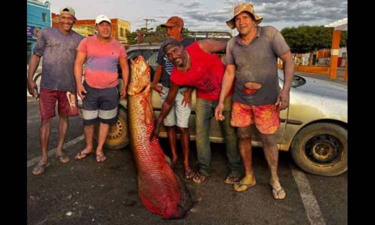Esse é o segundo registro, em pouco mais de um mês, da captura de um pirarucu de grandes proporções na região. Em abril, pescadores do povoado de Pau D’Arco, também em Malhada, fisgaram um exemplar de 80 quilos e 2,2 metros no Rio São Francisco.