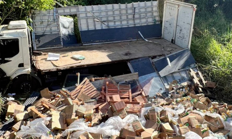Na tarde desta terça-feira (27/05), um caminhão-baú tombou na Rodovia Santos Dumont (BR-116), no trecho da Serra do Mutum, entre os municípios de Jaguaquara e Jequié, no Sudoeste da Bahia. O veículo, despencou em uma ribanceira às margens da estrada após o motorista perder o controle da direção.