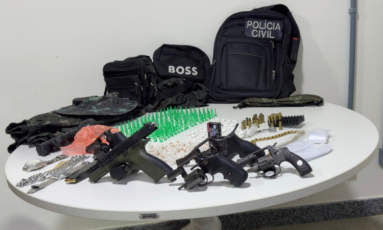 Cinco armas de fogo, drogas e materiais utilizados no tráfico de entorpecentes foram encontrados durante ação conjunta entre as Polícias Militar e Civil, na madrugada desta quinta-feira (10), no município de Ibirapitanga, na região Sul da Bahia. Batizada de ‘Operação Ibira’, a quarta fase da ação teve o objetivo de cumprir mandados de prisão, busca e apreensão contra integrantes de uma organização criminosa atuante no município.