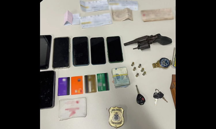 Durante a ação, foram apreendidos: 01 revólver calibre .38 com seis munições intactas; 02 motocicletas com chassi adulterado e ligação direta; Cheques, notas promissórias e cartões bancários em nome de terceiros; 07 dispositivos eletrônicos (entre celulares e tablets) e Diversos veículos registrados em nomes de pessoas não relacionadas à investigação.