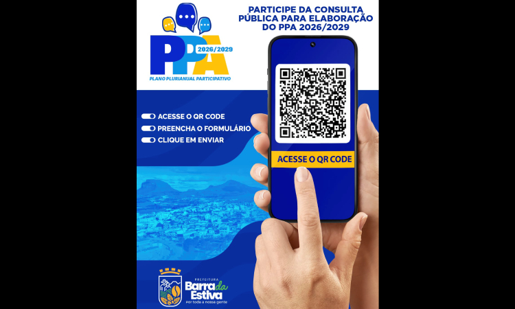 A Prefeitura de Barra da Estiva, na Chapada Diamantina, iniciou o processo de consulta pública para a construção do Plano Plurianual (PPA) 2026–2029. A iniciativa tem como objetivo garantir a participação da população na definição das prioridades e diretrizes que irão orientar as ações do poder público municipal nos próximos quatro anos.