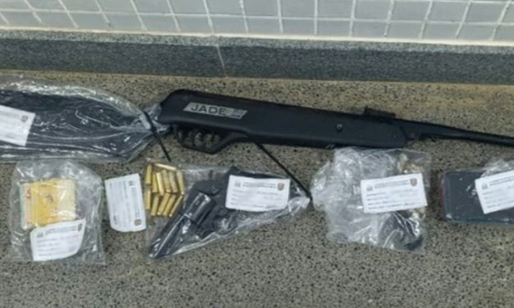 Durante a abordagem, foram apreendidos um revólver calibre 38 com munições, porções de maconha e R$ 665 reais em espécie. Nas dependências do local, foram ainda encontrados uma espingarda calibre 5,5 e um carro com restrição de furto/roubo.