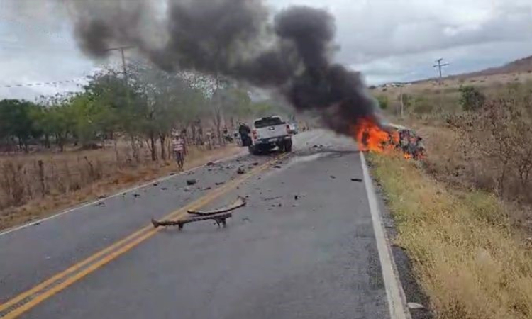 Veículo pega fogo após acidente grave na BA-046, entre Itaberaba e Iaçu