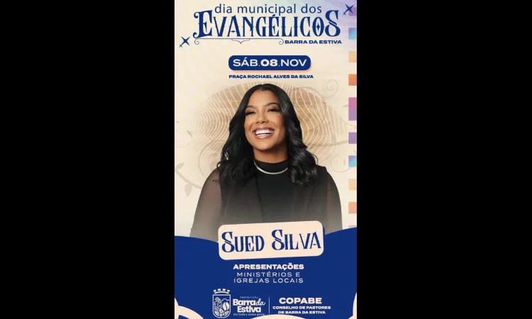 A programação acontecerá na Praça Rochael Alves da Silva e promete uma noite marcada por louvor, adoração e gratidão, reunindo fiéis de diversas igrejas e ministérios do município. O evento contará com a presença especial da cantora Sued Silva, além de apresentações de grupos locais.